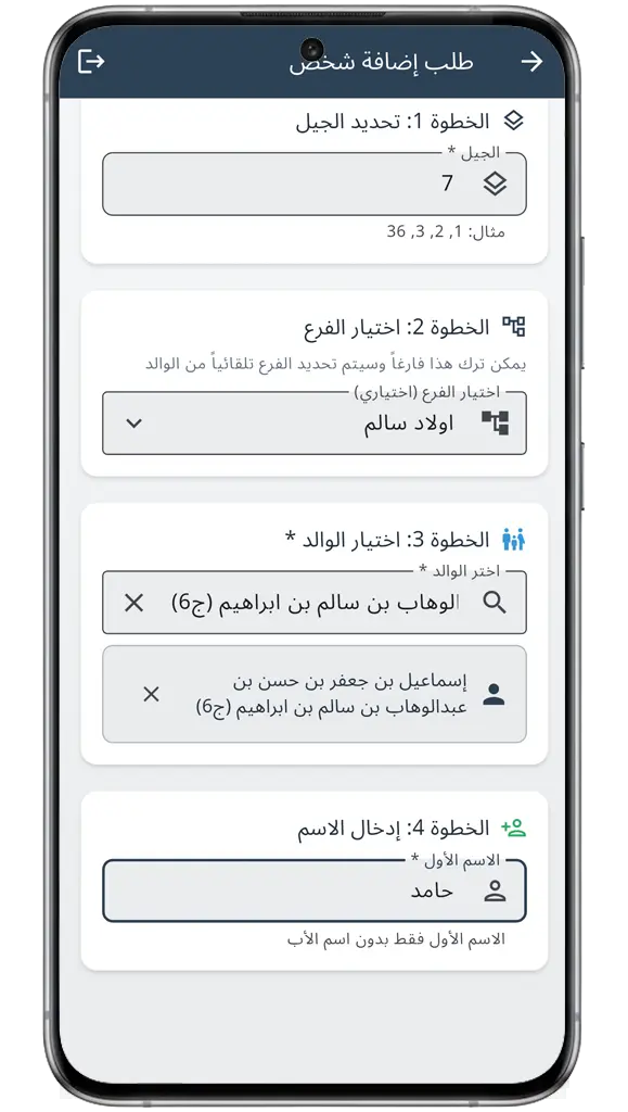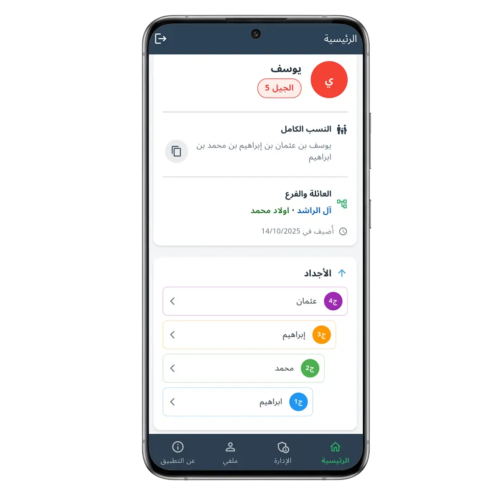أنشئ شجرة عائلتك بسهولة وأضف الأفراد والعلاقات بينهم وقم بمشاركة كود العائلة لعائلتك